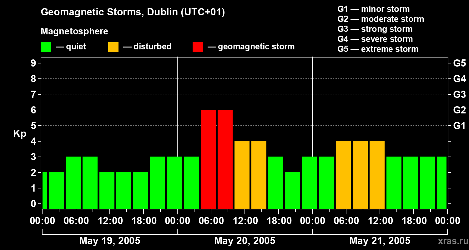 Geomagnetic storms in Dublin on May 21, 2005