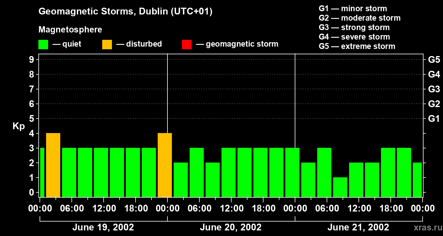 Geomagnetic storms in Dublin on Jun 21, 2002