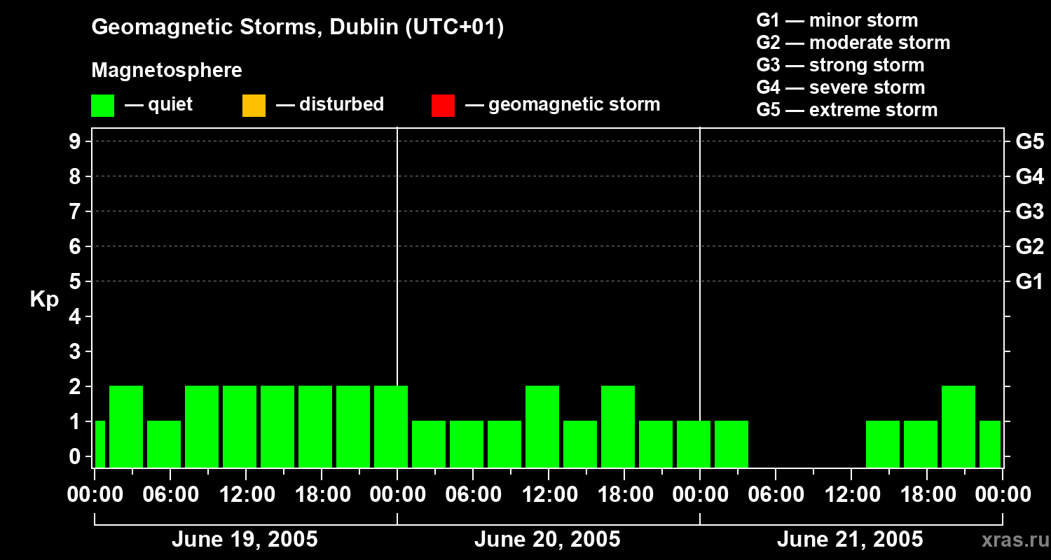 Geomagnetic storms in Dublin on Jun 21, 2005