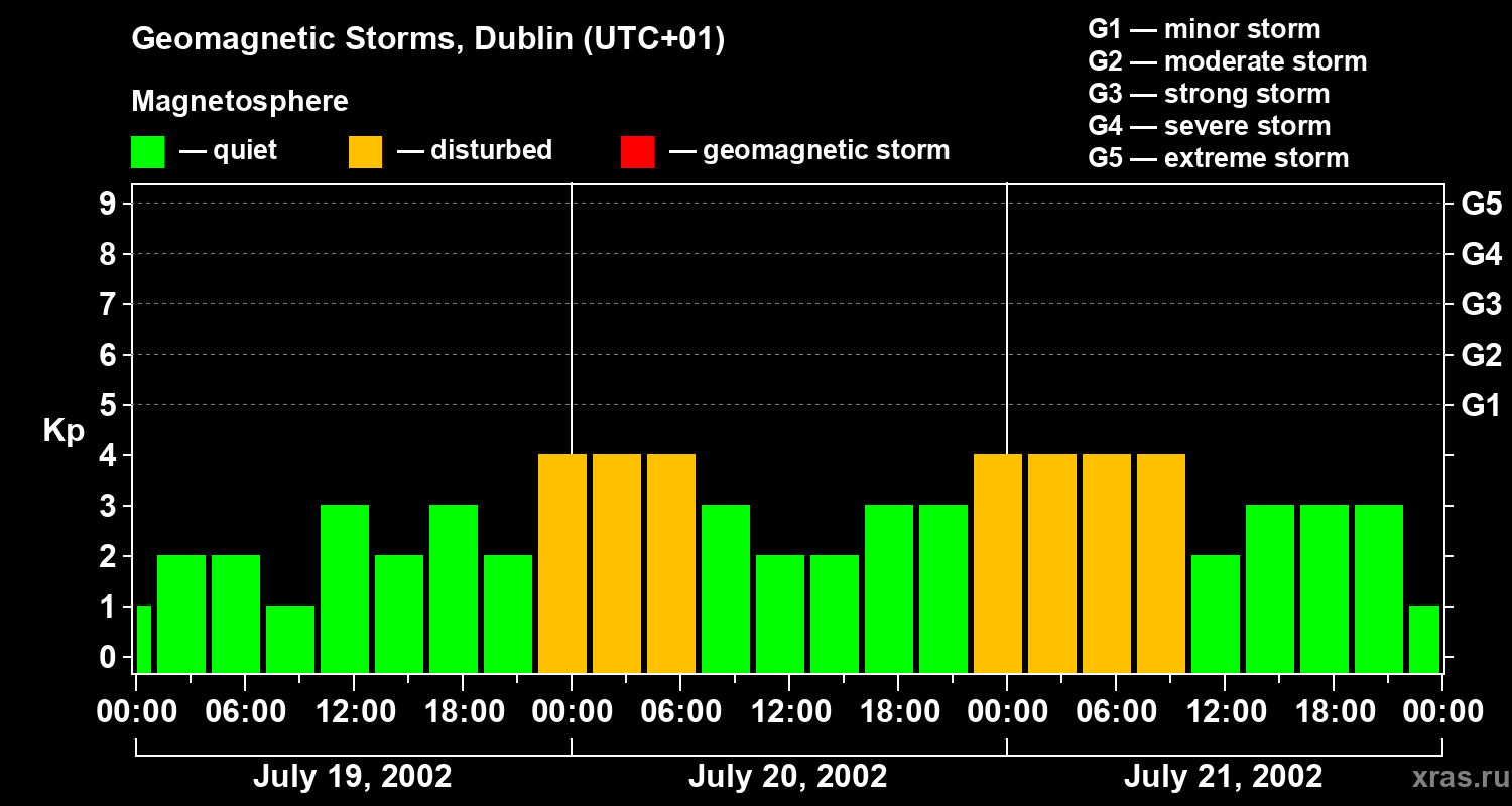 Geomagnetic storms in Dublin on Jul 21, 2002
