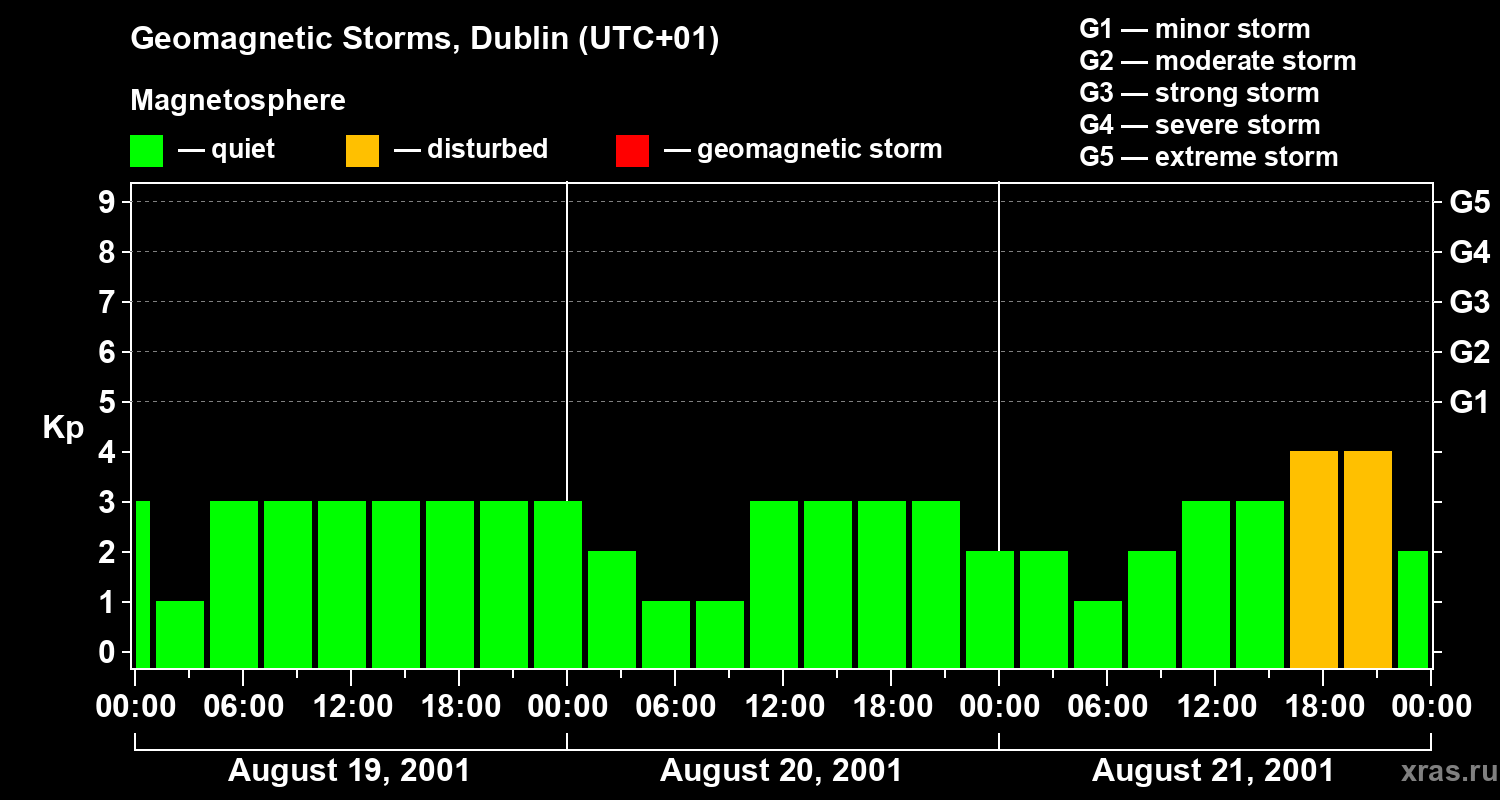 Geomagnetic storms in Dublin on Aug 21, 2001