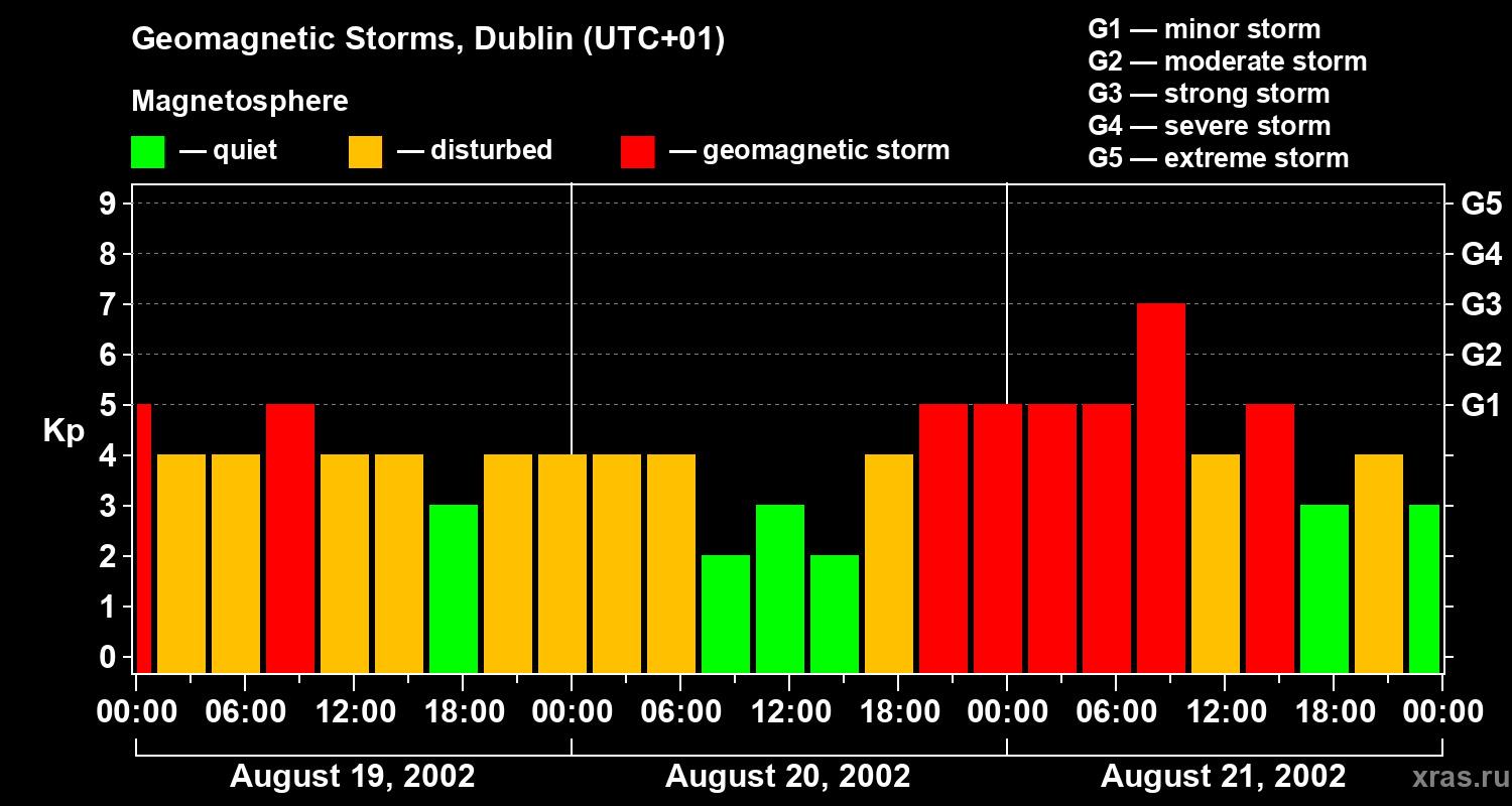 Geomagnetic storms in Dublin on Aug 21, 2002