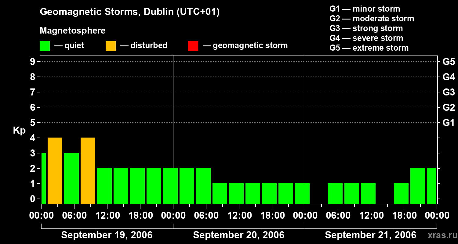 Geomagnetic storms in Dublin on Sep 21, 2006