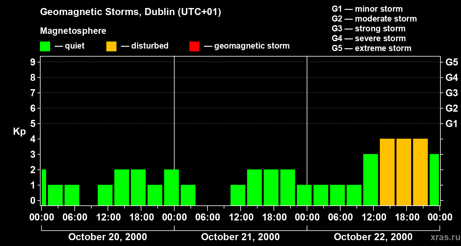 Geomagnetic storms in Dublin on Oct 22, 2000