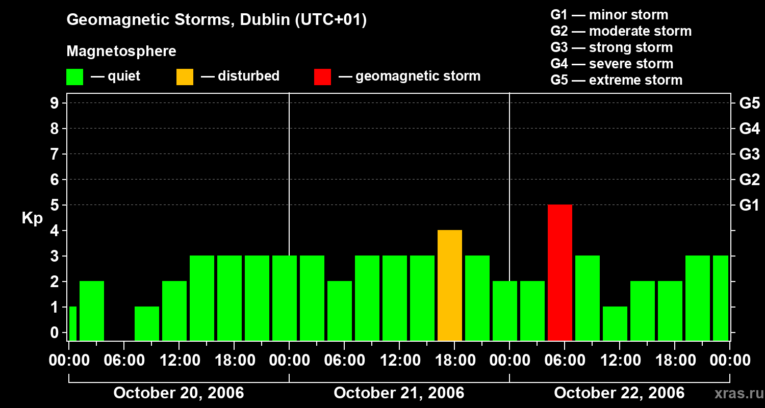 Geomagnetic storms in Dublin on Oct 22, 2006