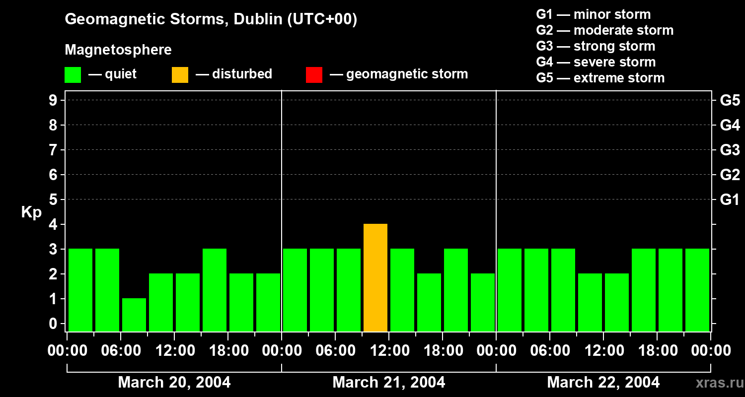 Geomagnetic storms in Dublin on Mar 22, 2004
