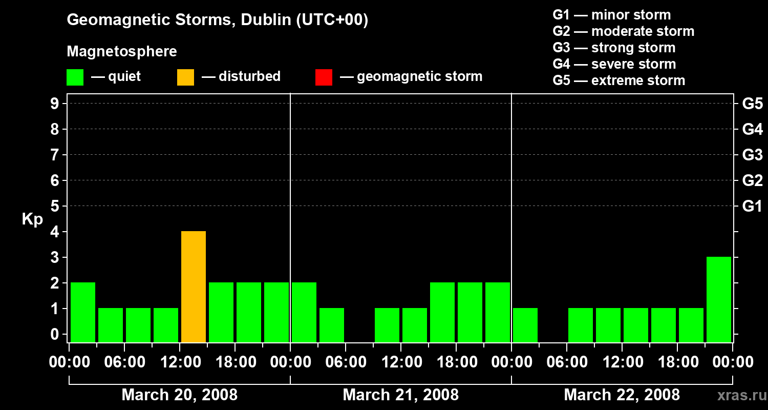 Geomagnetic storms in Dublin on Mar 22, 2008