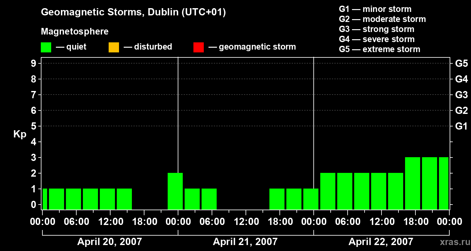 Geomagnetic storms in Dublin on Apr 22, 2007