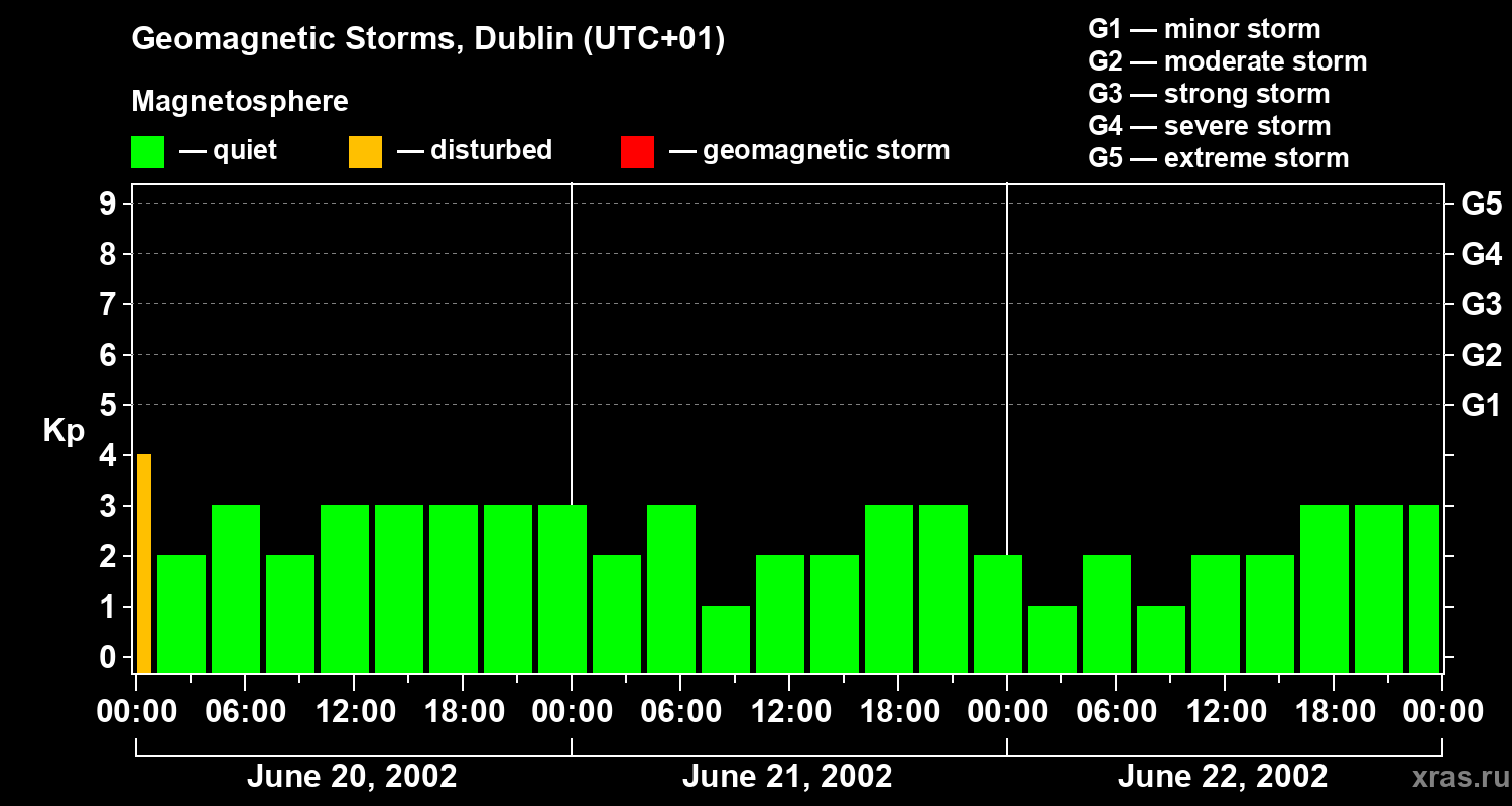 Geomagnetic storms in Dublin on Jun 22, 2002