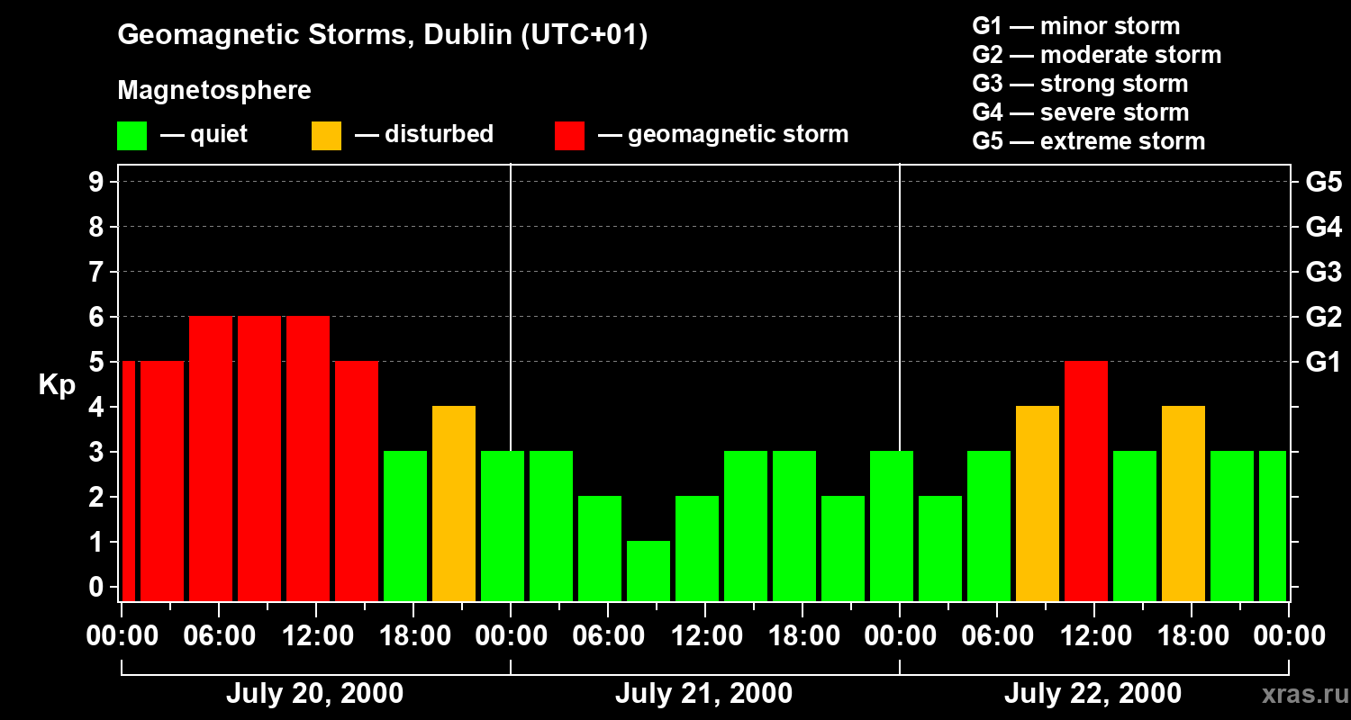 Geomagnetic storms in Dublin on Jul 22, 2000