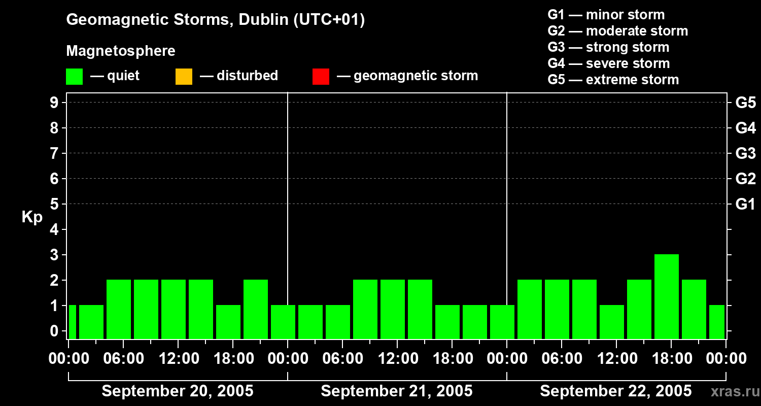 Geomagnetic storms in Dublin on Sep 22, 2005