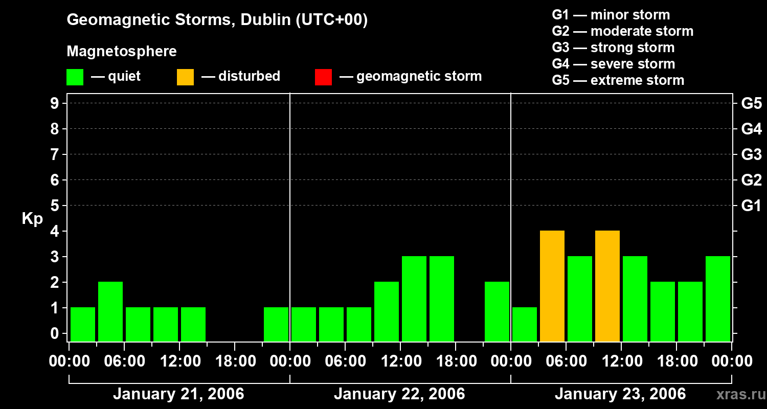Geomagnetic storms in Dublin — Jan 23, 2006