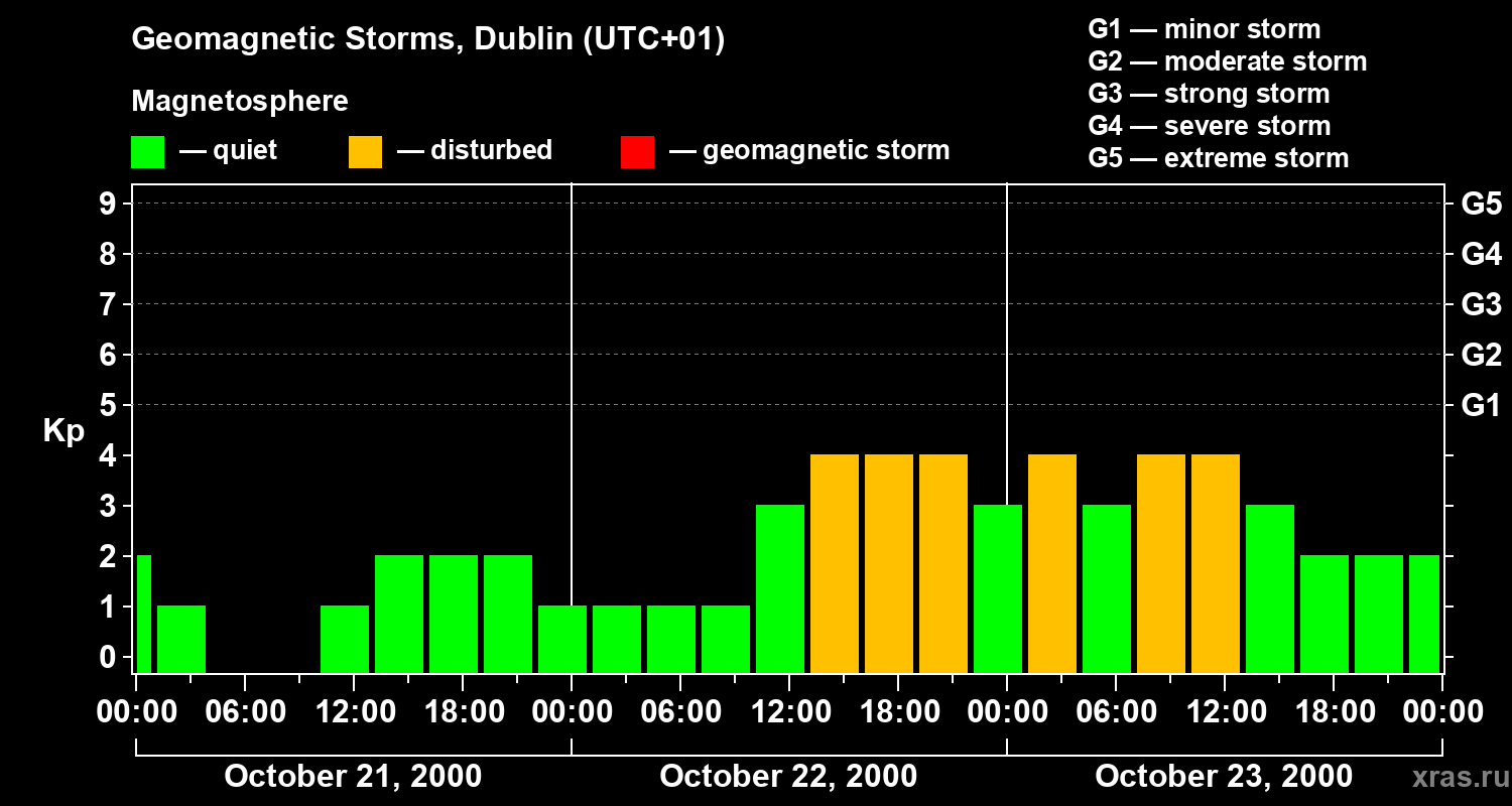 Geomagnetic storms in Dublin on Oct 23, 2000