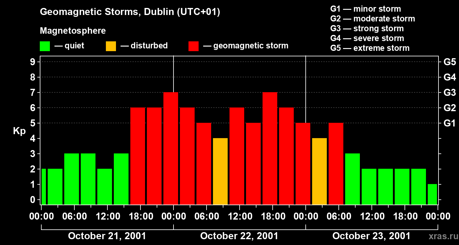 Geomagnetic storms in Dublin on Oct 23, 2001