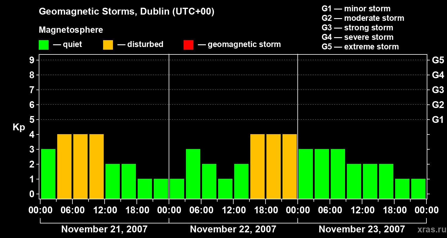 Geomagnetic storms in Dublin on Nov 23, 2007