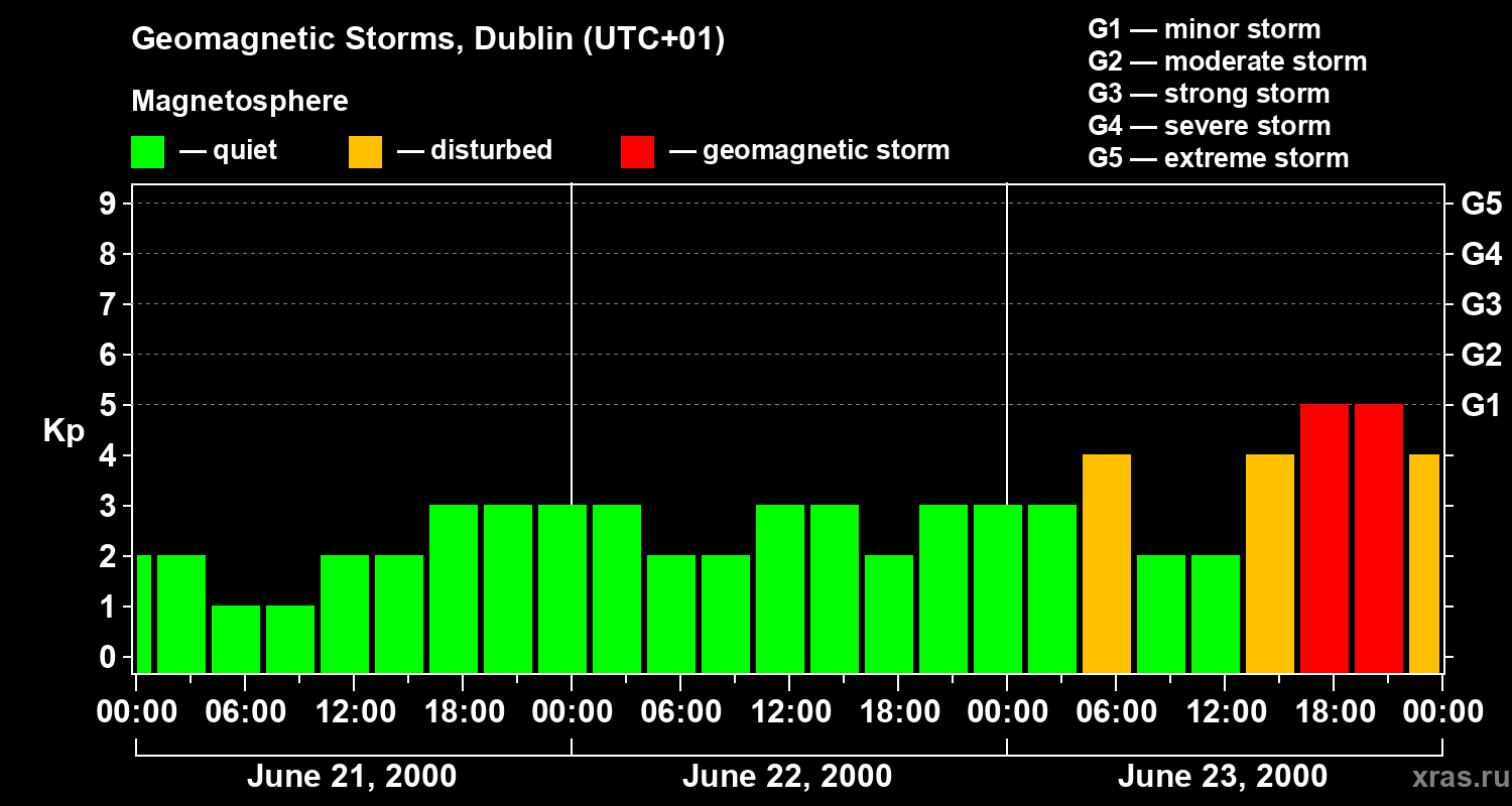 Geomagnetic storms in Dublin on Jun 23, 2000
