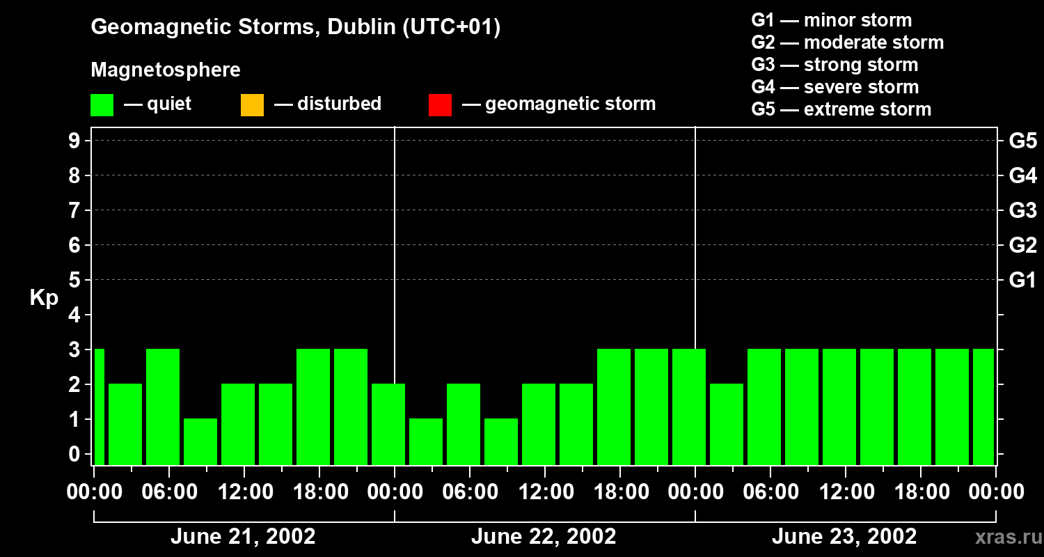 Geomagnetic storms in Dublin on Jun 23, 2002