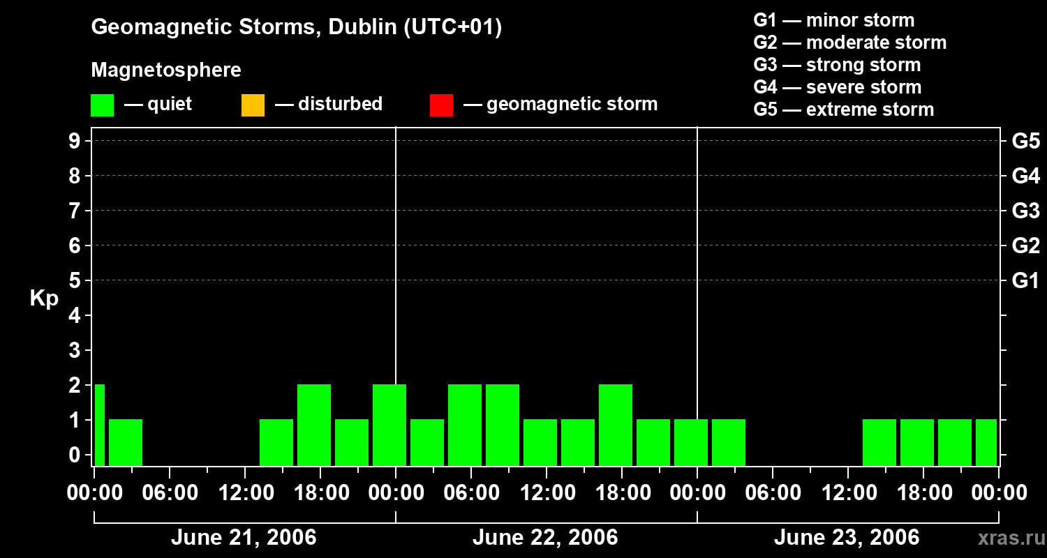 Geomagnetic storms in Dublin on Jun 23, 2006