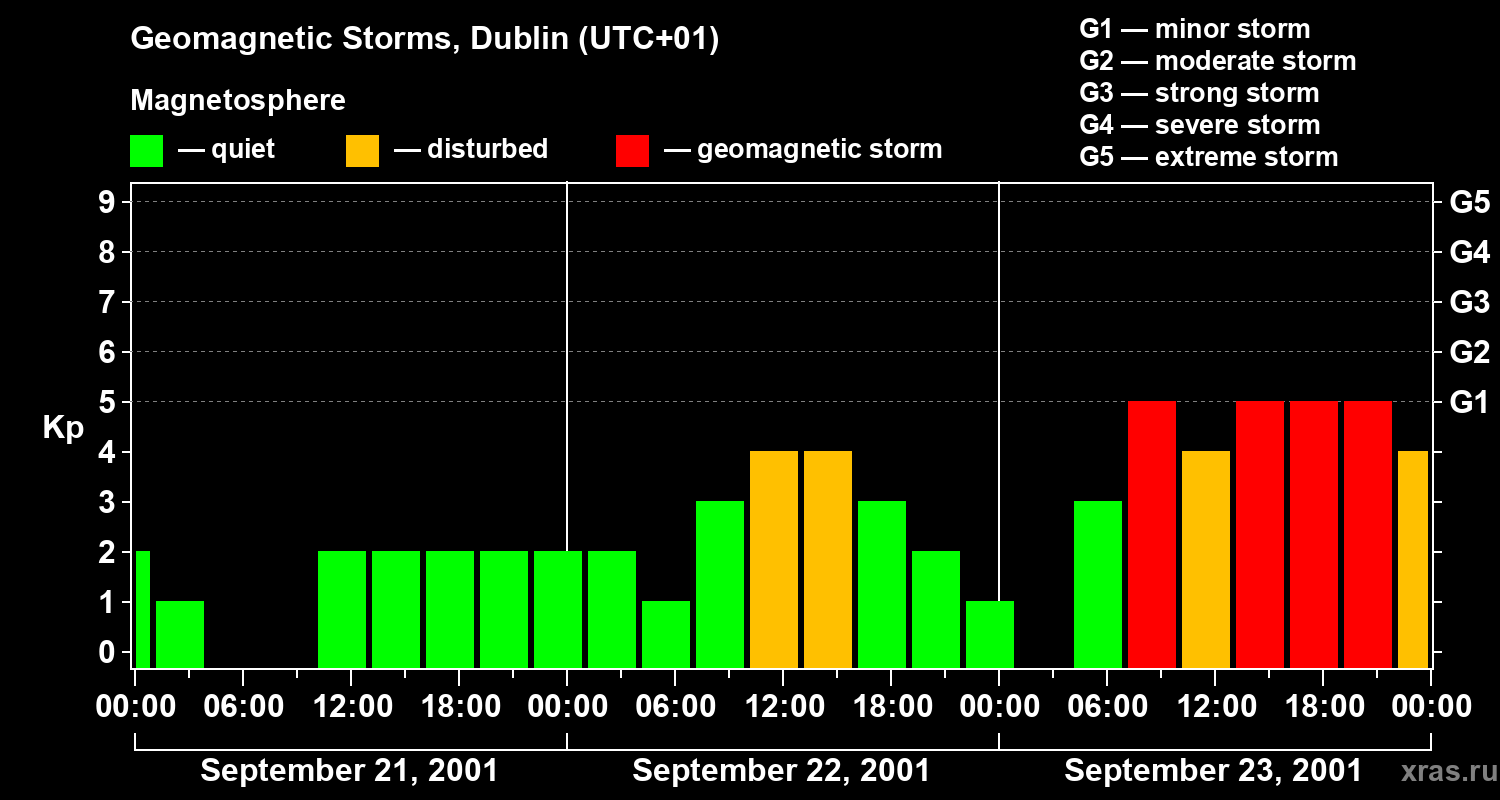 Geomagnetic storms in Dublin on Sep 23, 2001