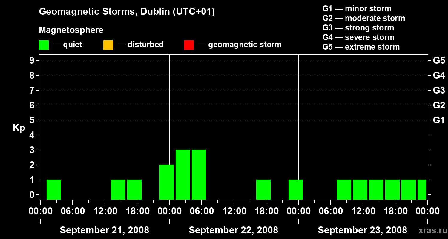 Geomagnetic storms in Dublin on Sep 23, 2008