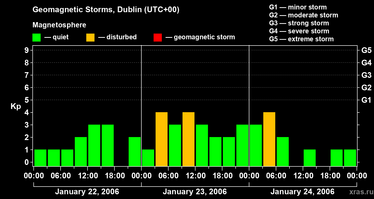 Geomagnetic storms in Dublin on Jan 24, 2006