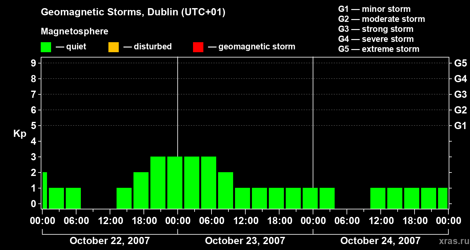 Geomagnetic storms in Dublin on Oct 24, 2007