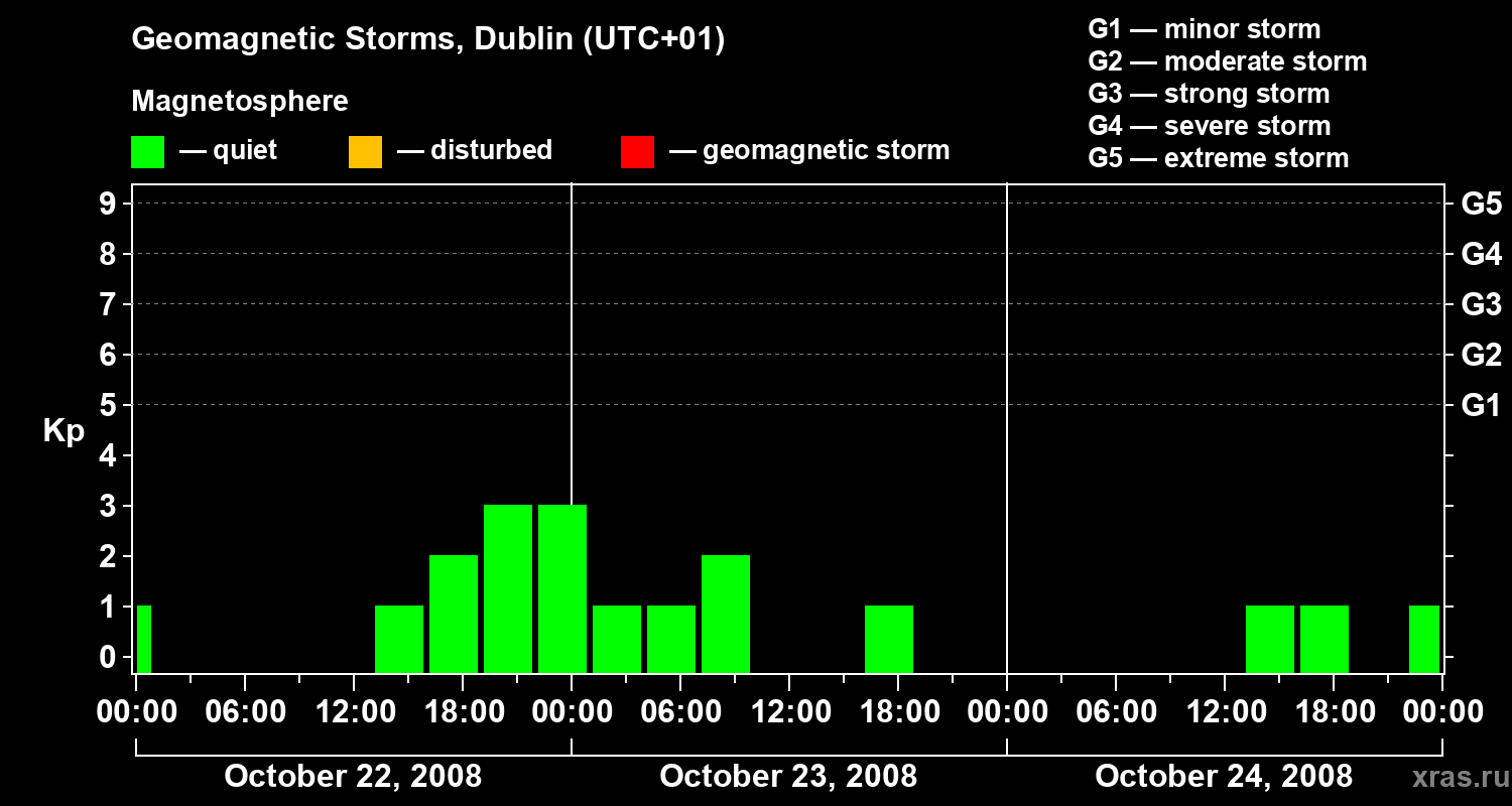 Geomagnetic storms in Dublin on Oct 24, 2008
