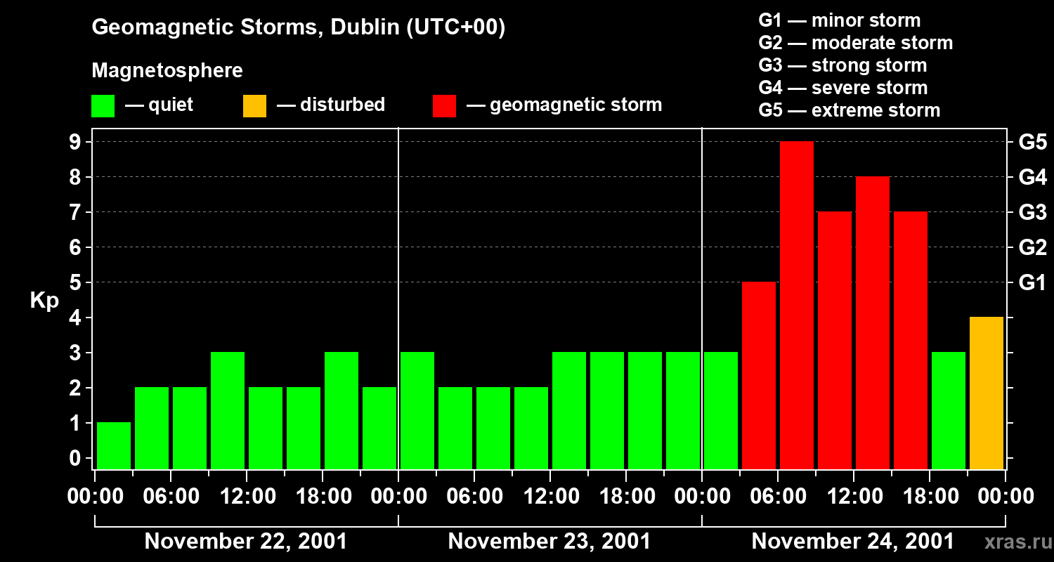 Geomagnetic storms in Dublin on Nov 24, 2001