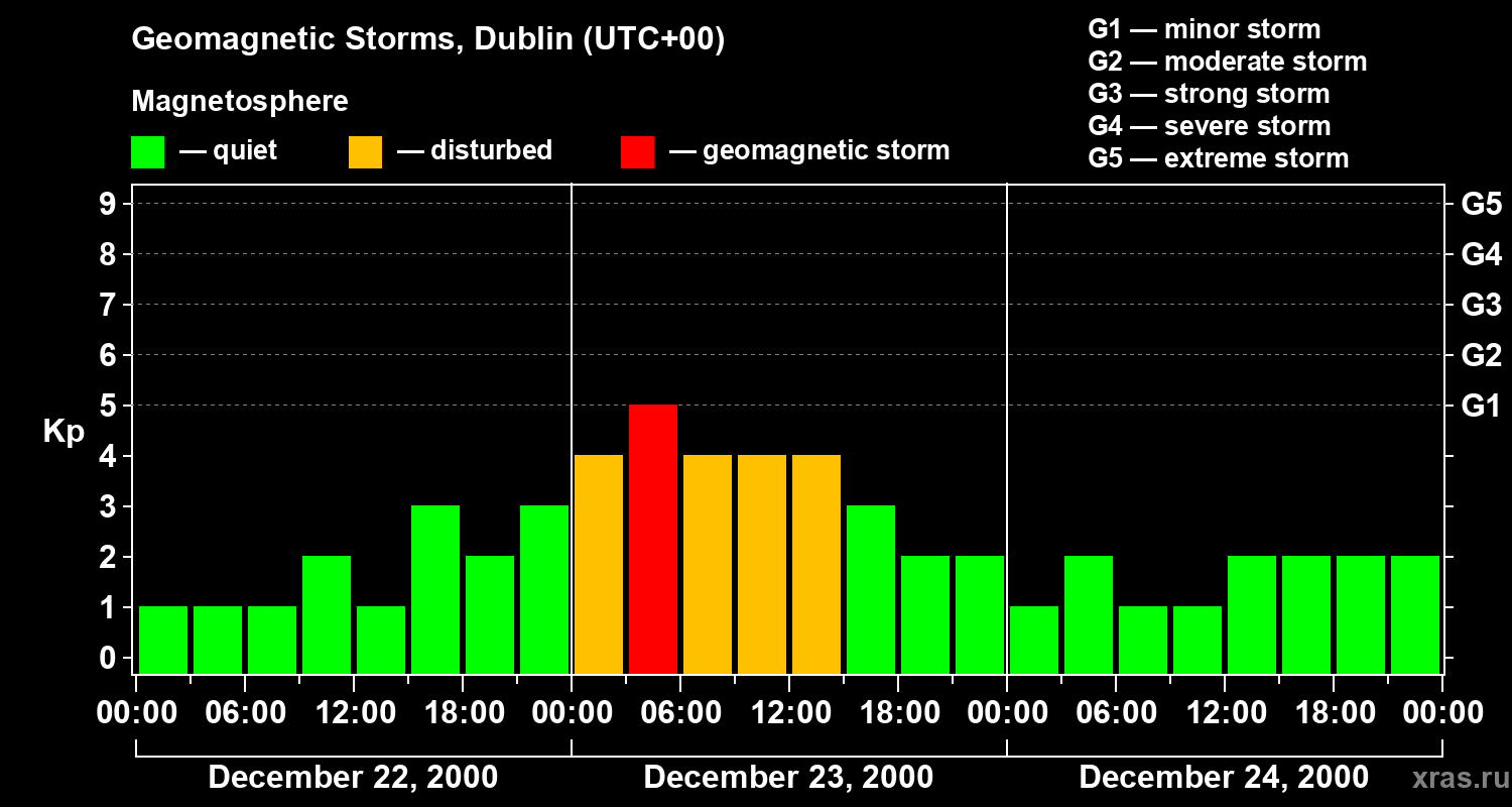 Geomagnetic storms in Dublin on Dec 24, 2000