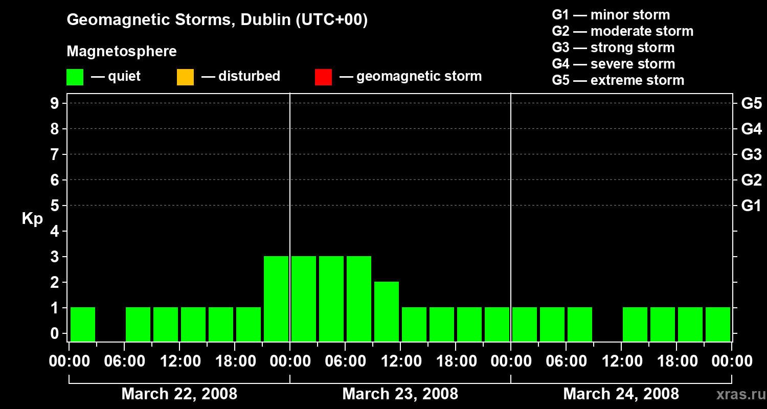 Geomagnetic storms in Dublin on Mar 24, 2008