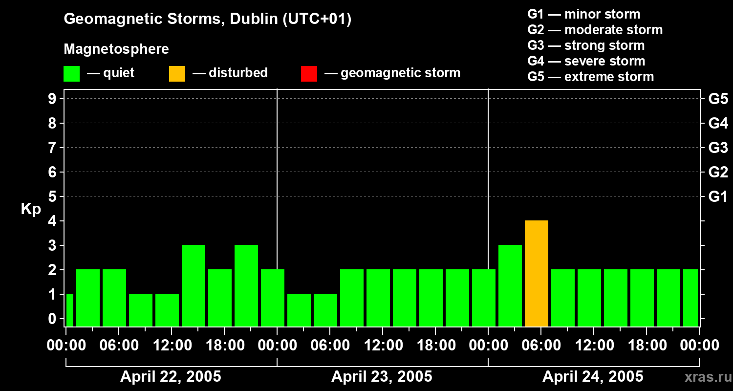 Geomagnetic storms in Dublin on Apr 24, 2005
