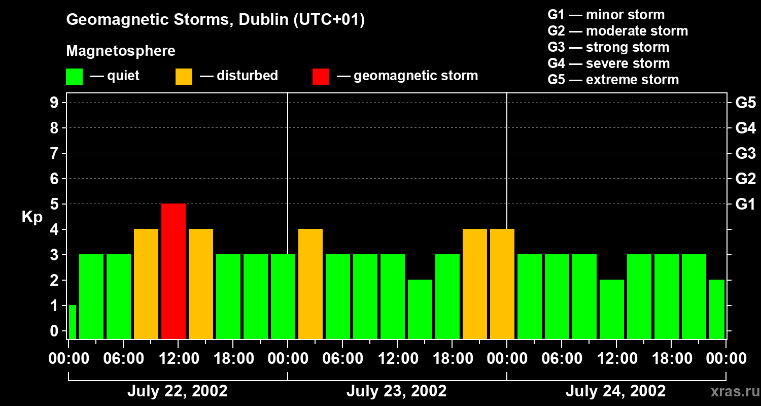 Geomagnetic storms in Dublin on Jul 24, 2002