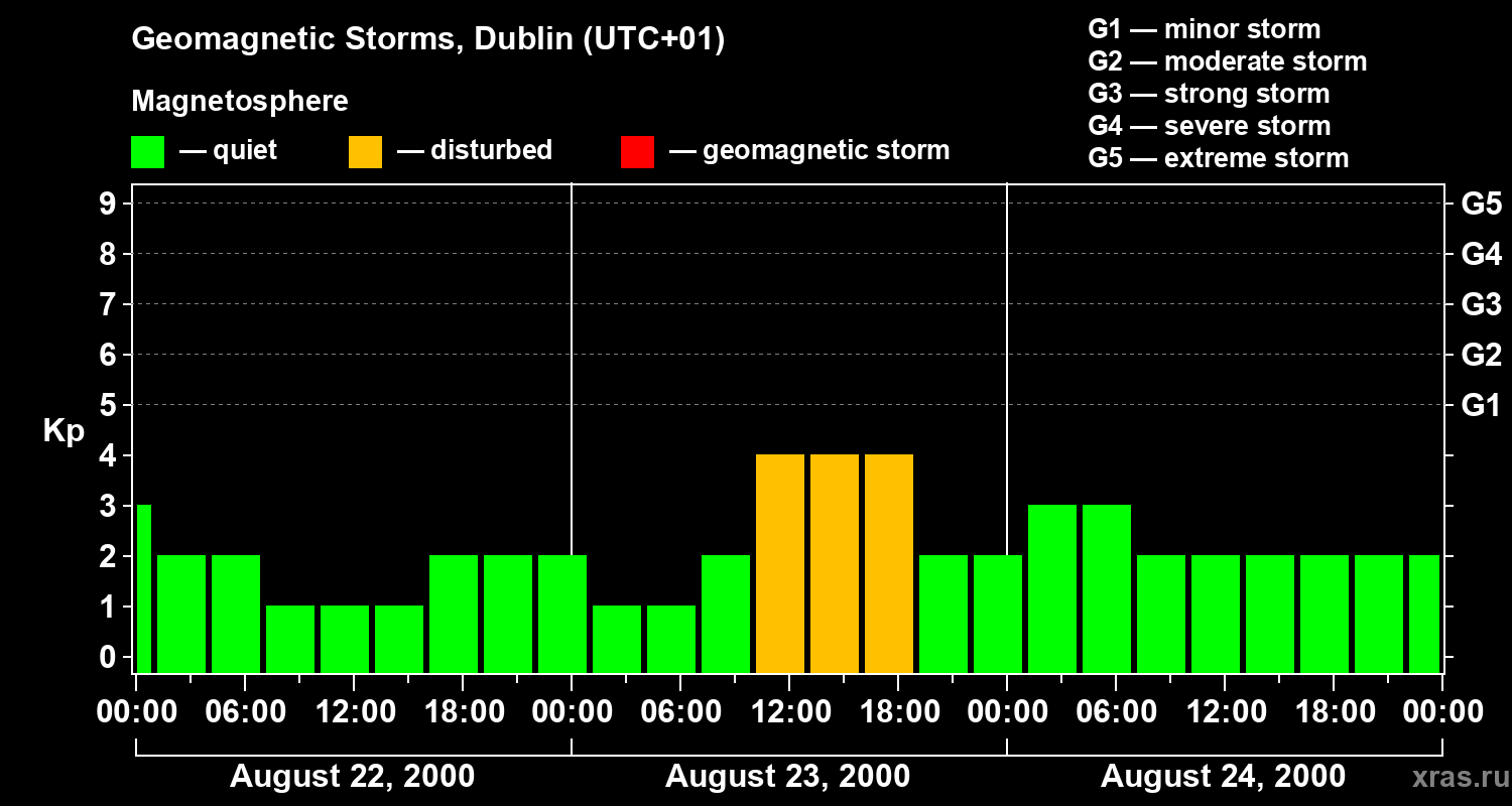 Geomagnetic storms in Dublin on Aug 24, 2000