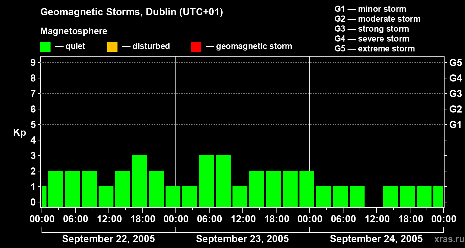Geomagnetic storms in Dublin on Sep 24, 2005