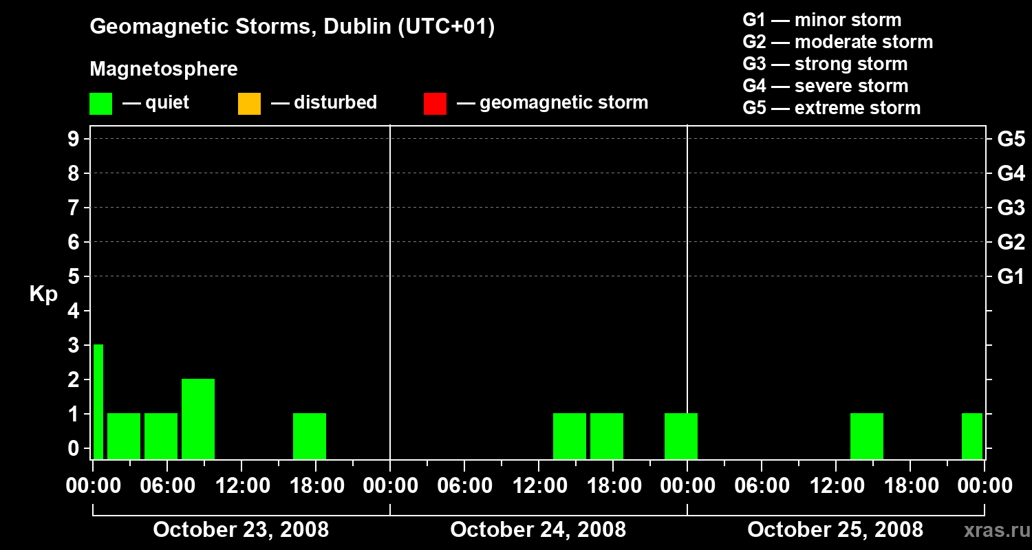 Geomagnetic storms in Dublin on Oct 25, 2008