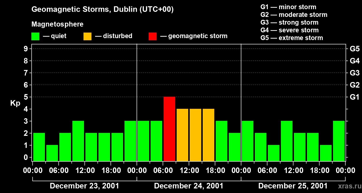 Geomagnetic storms in Dublin on Dec 25, 2001