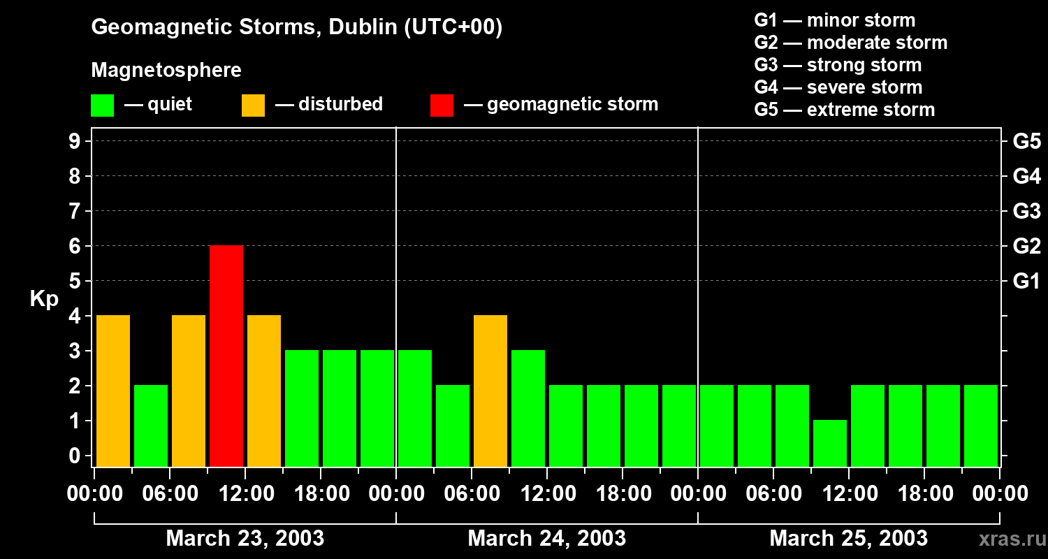 Geomagnetic storms in Dublin on Mar 25, 2003