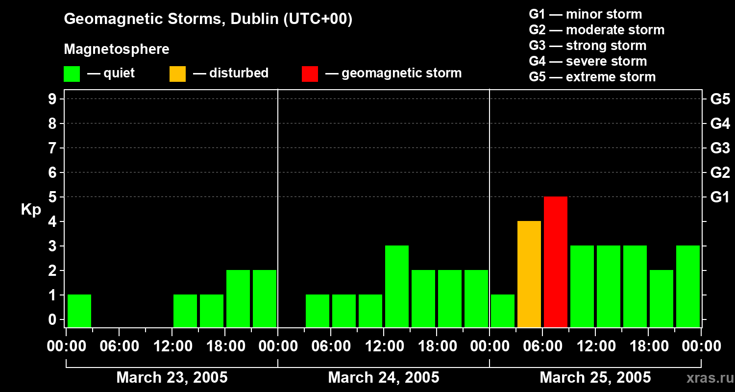 Geomagnetic storms in Dublin on Mar 25, 2005