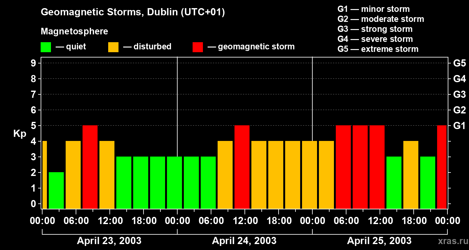 Geomagnetic storms in Dublin on Apr 25, 2003