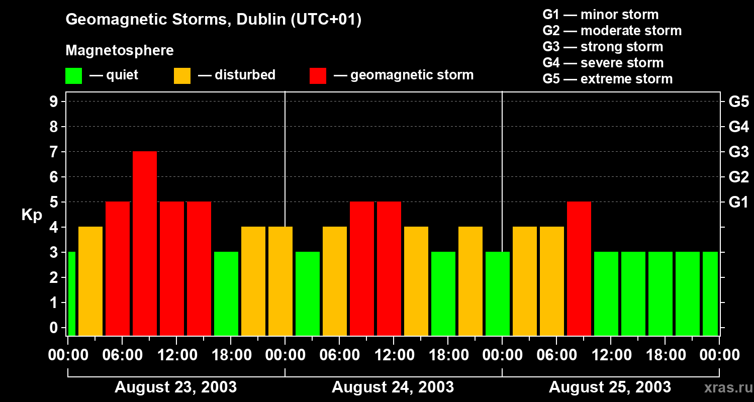 Geomagnetic storms in Dublin — Aug 25, 2003