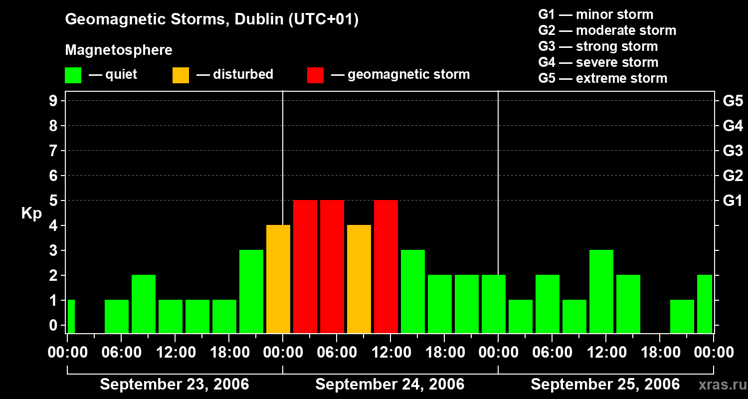 Geomagnetic storms in Dublin on Sep 25, 2006
