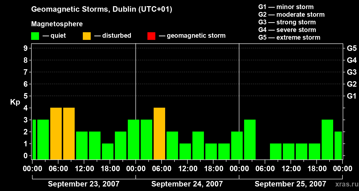 Geomagnetic storms in Dublin on Sep 25, 2007