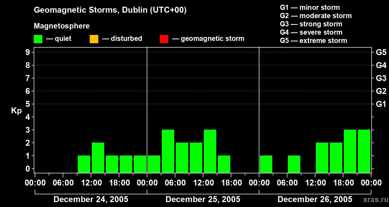 Geomagnetic storms in Dublin on Dec 26, 2005