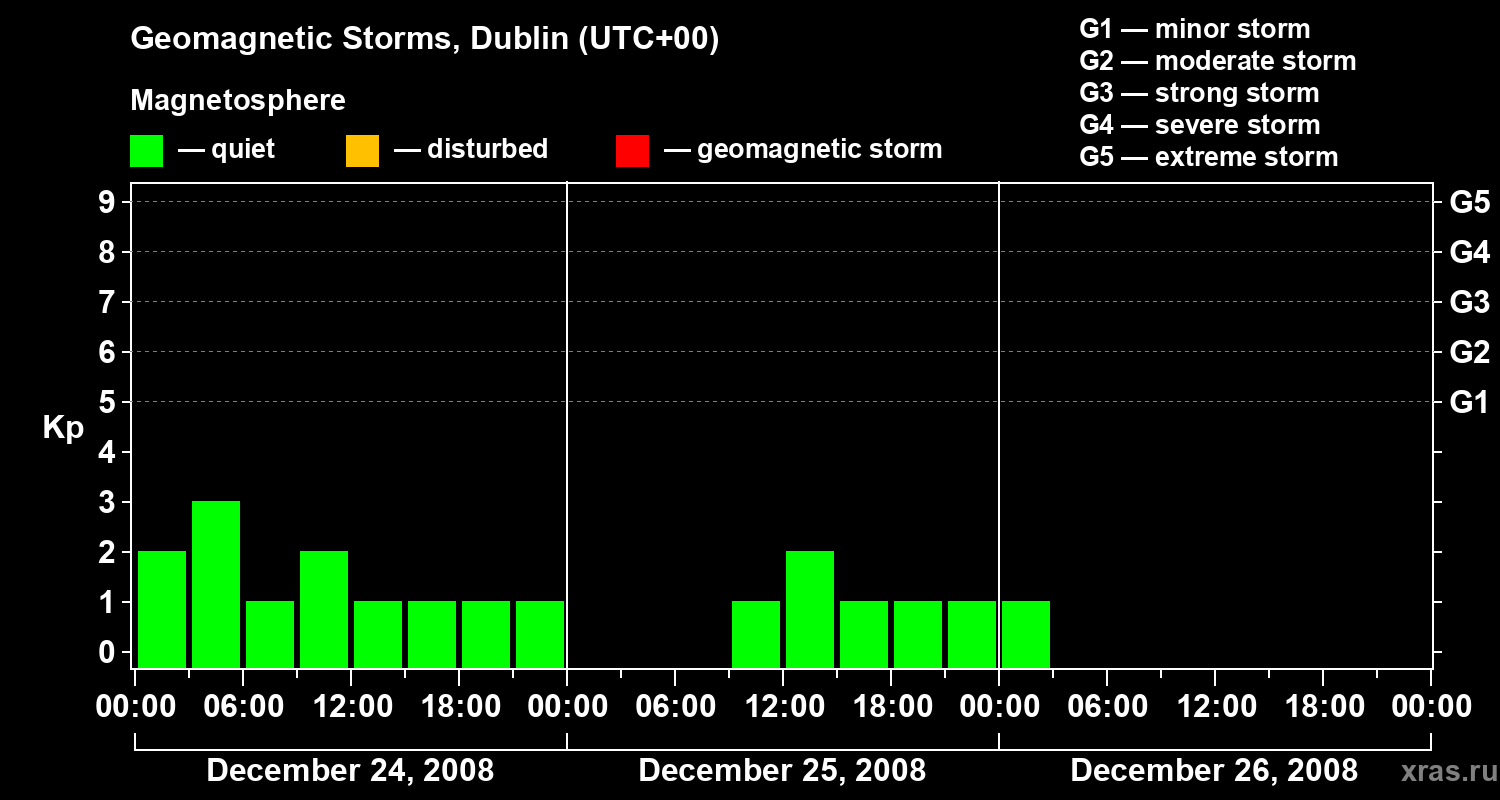 Geomagnetic storms in Dublin on Dec 26, 2008