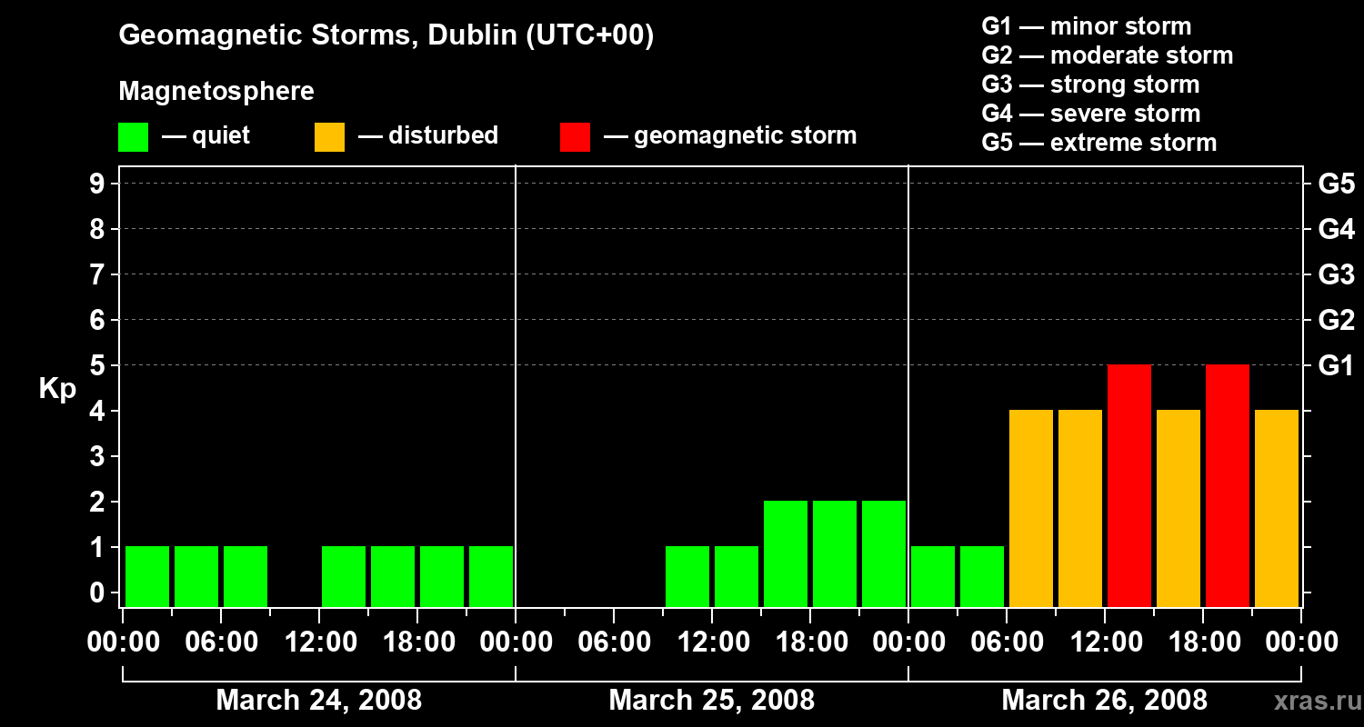 Geomagnetic storms in Dublin on Mar 26, 2008