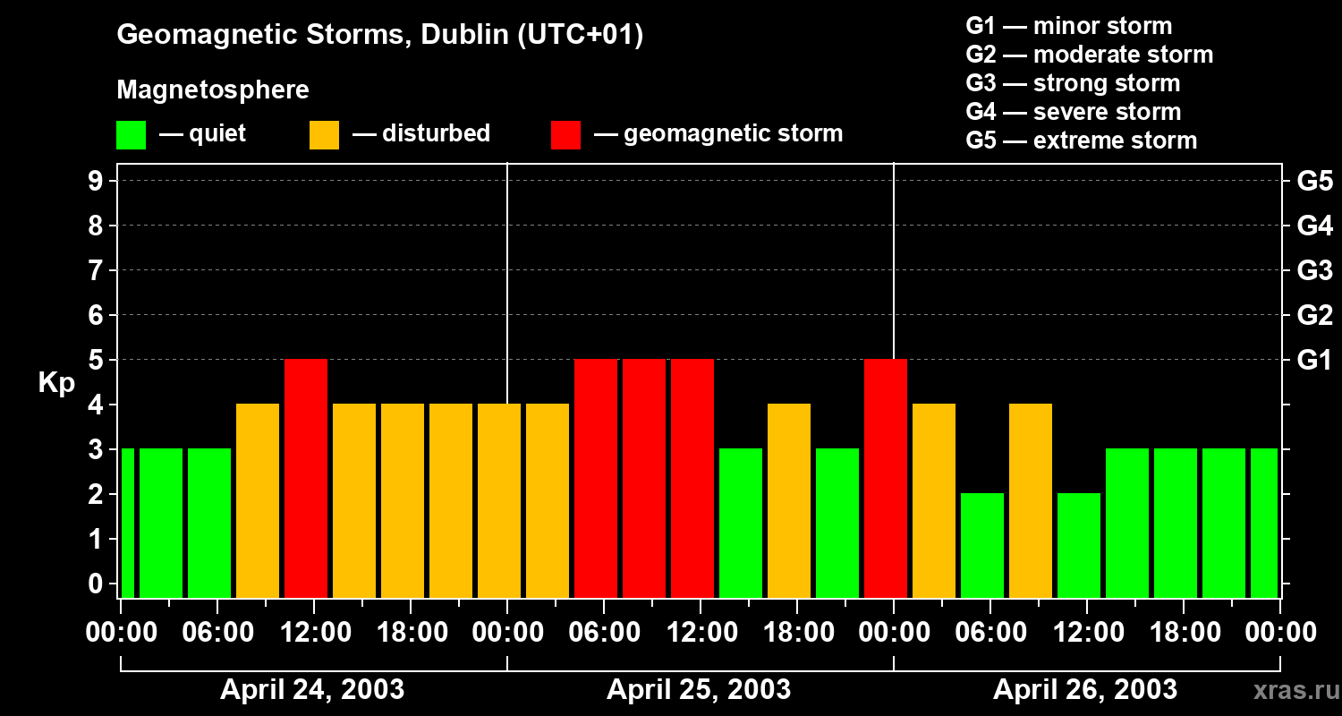 Geomagnetic storms in Dublin on Apr 26, 2003