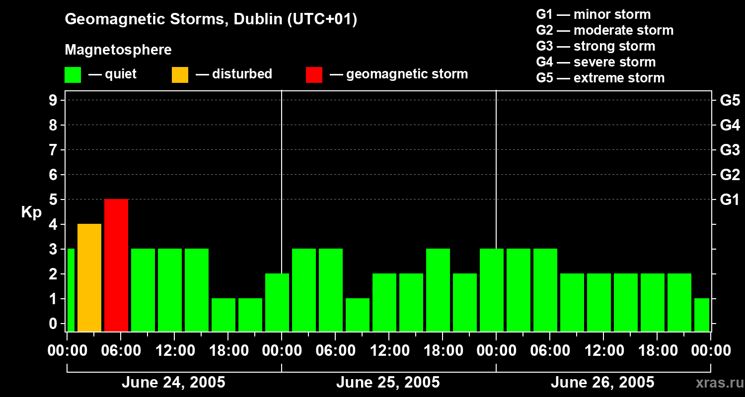 Geomagnetic storms in Dublin on Jun 26, 2005