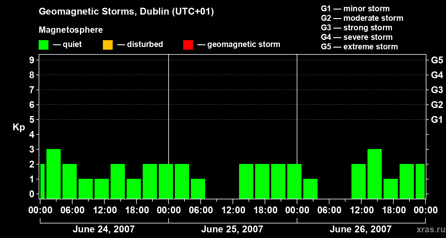Geomagnetic storms in Dublin on Jun 26, 2007