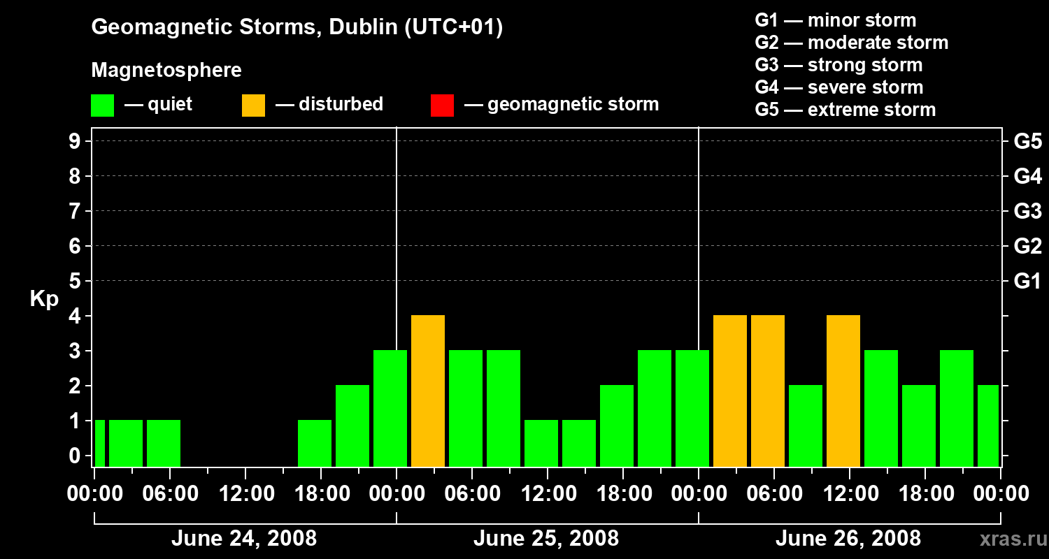 Geomagnetic storms in Dublin on Jun 26, 2008