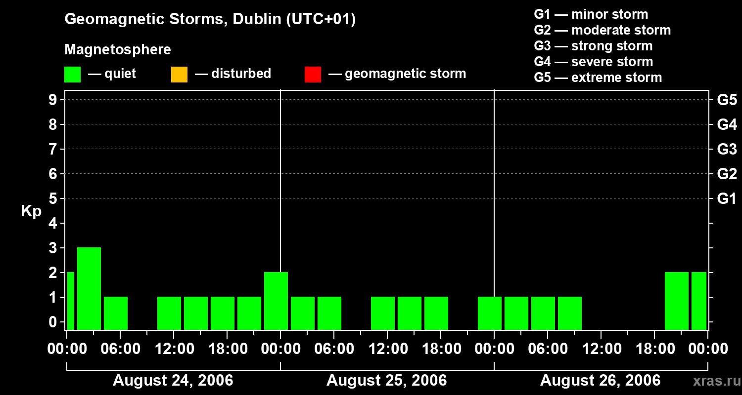 Geomagnetic storms in Dublin on Aug 26, 2006